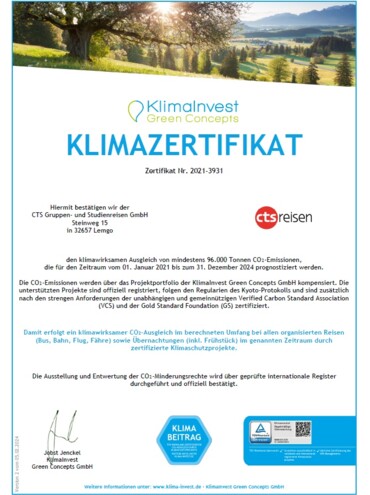 Die durch Beförderungsleistungen entstehenden CO2-Emissionen kompensieren wir über das Projektportfolio der KlimaINVEST Green Concepts GmbH. Das aktuelle Klimazertifikat können Sie hier einsehen.